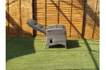 You’ll get two reclining garden chairs, including stylish cushions, two footstools with cushions, and a shatter-resistant, glass-topped rattan side table.