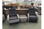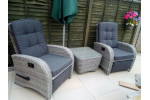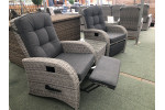 Reclining Rattan Bistro Set + Built in Footrests in Silver Grey