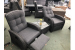 Grey Rattan Bistro Set with Reclining Chairs & Footrests