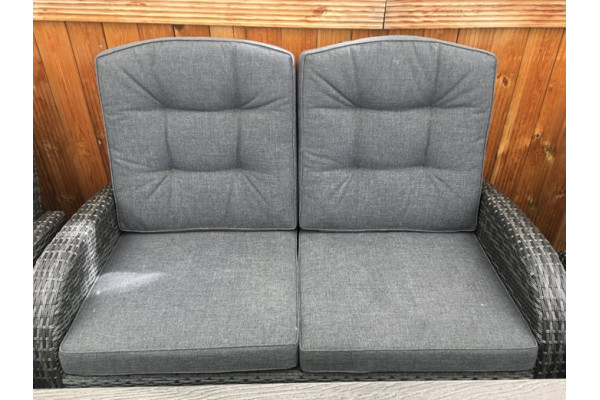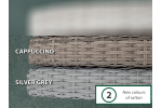The rust-proof aluminium frame, covered in hand-woven, synthetic rattan, means that the set is weatherproof and can be left out all year long without fear of fading, cracking, peeling, splitting or rust – much better than natural rattan – and it is maintenance-free.