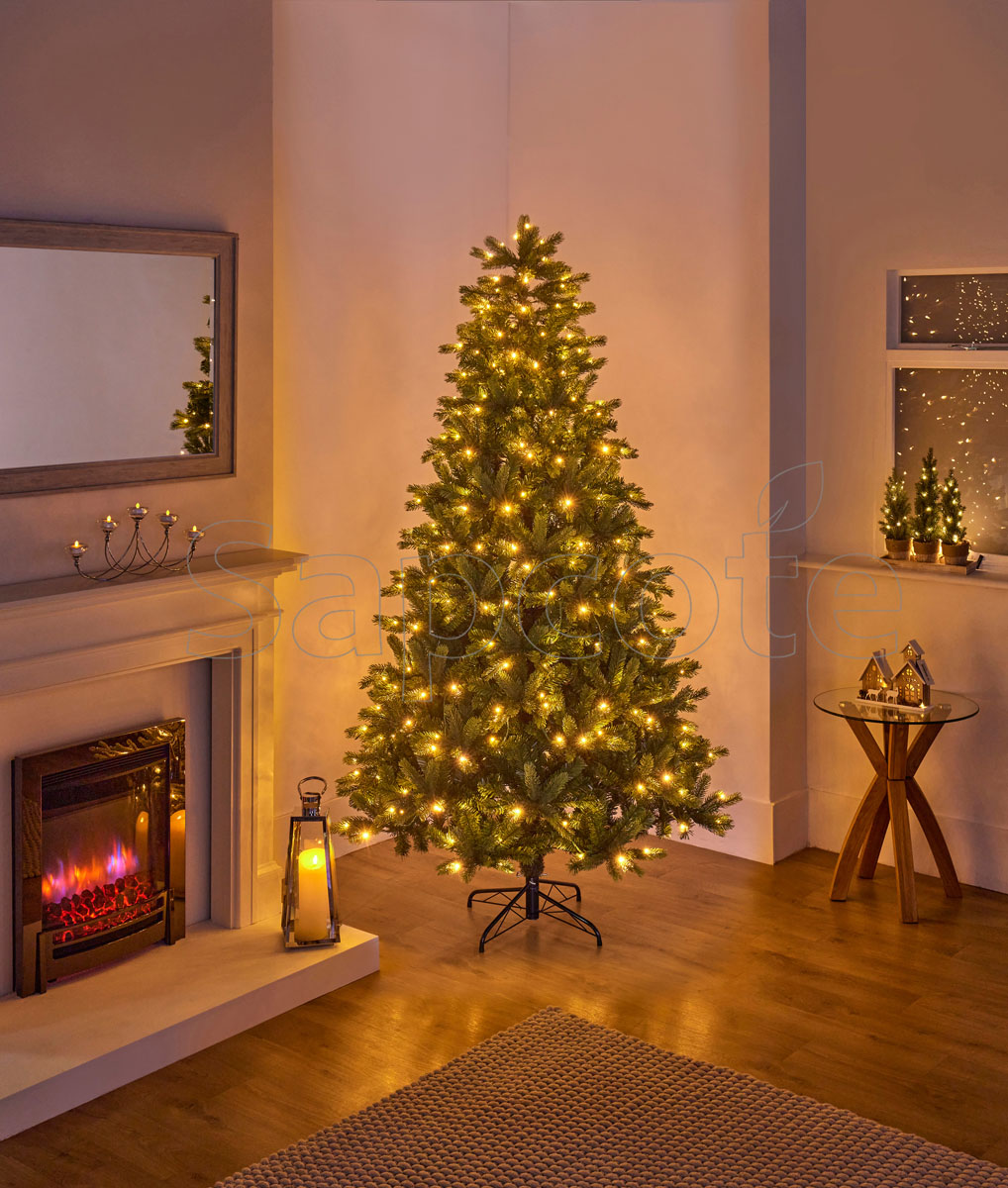 Artificial Tree Pre-Lit Barneswood 2.1m – 320 LED Lighted Tree