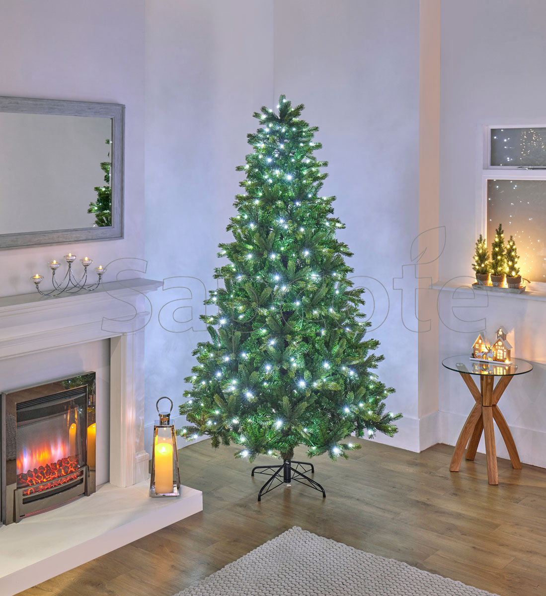Specs: 2.1m (7ft) height; prelit with 320 multi-colour LEDs; spruce-style artificial tree; full profile.
