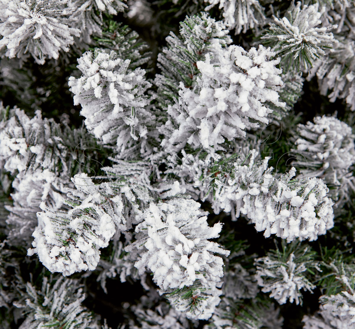 Specs: 2.1m (7ft) height; slim pencil profile; spruce-style artificial tree; snowy flocked finish.