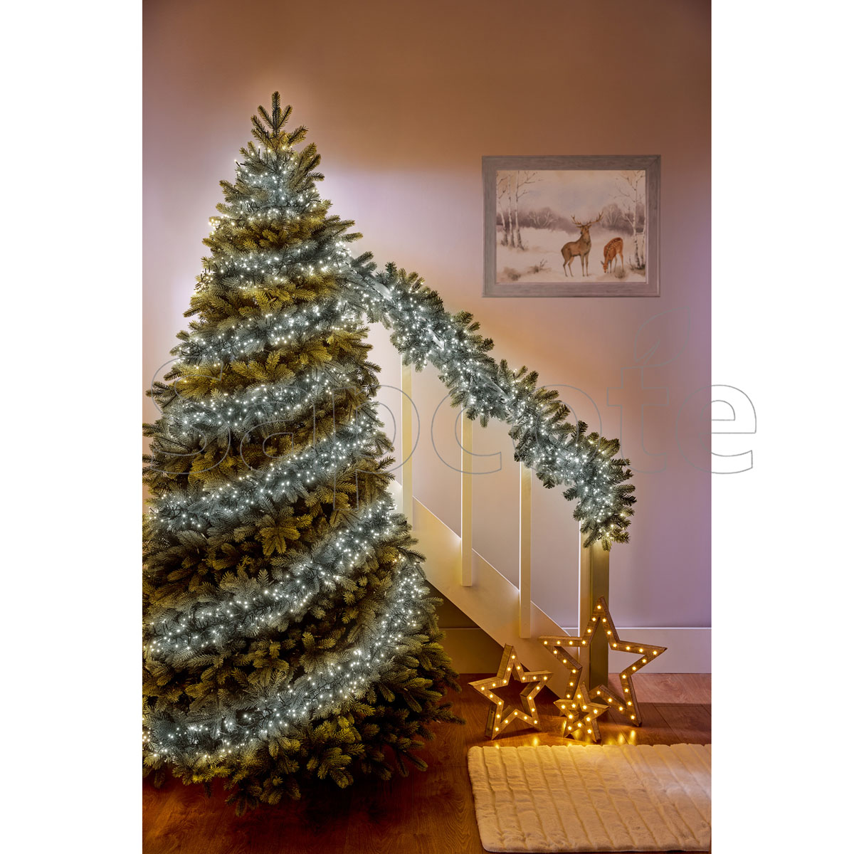 These ClusterBrights feature 5000 LEDs across 62.5 m, offering built for large-scale displays and outdoor installations. The rich, garland-style lights that create depth and texture in any festive display produce a cool, frosted sparkle for a crisp winter look, transforming any space into a festive showpiece.
