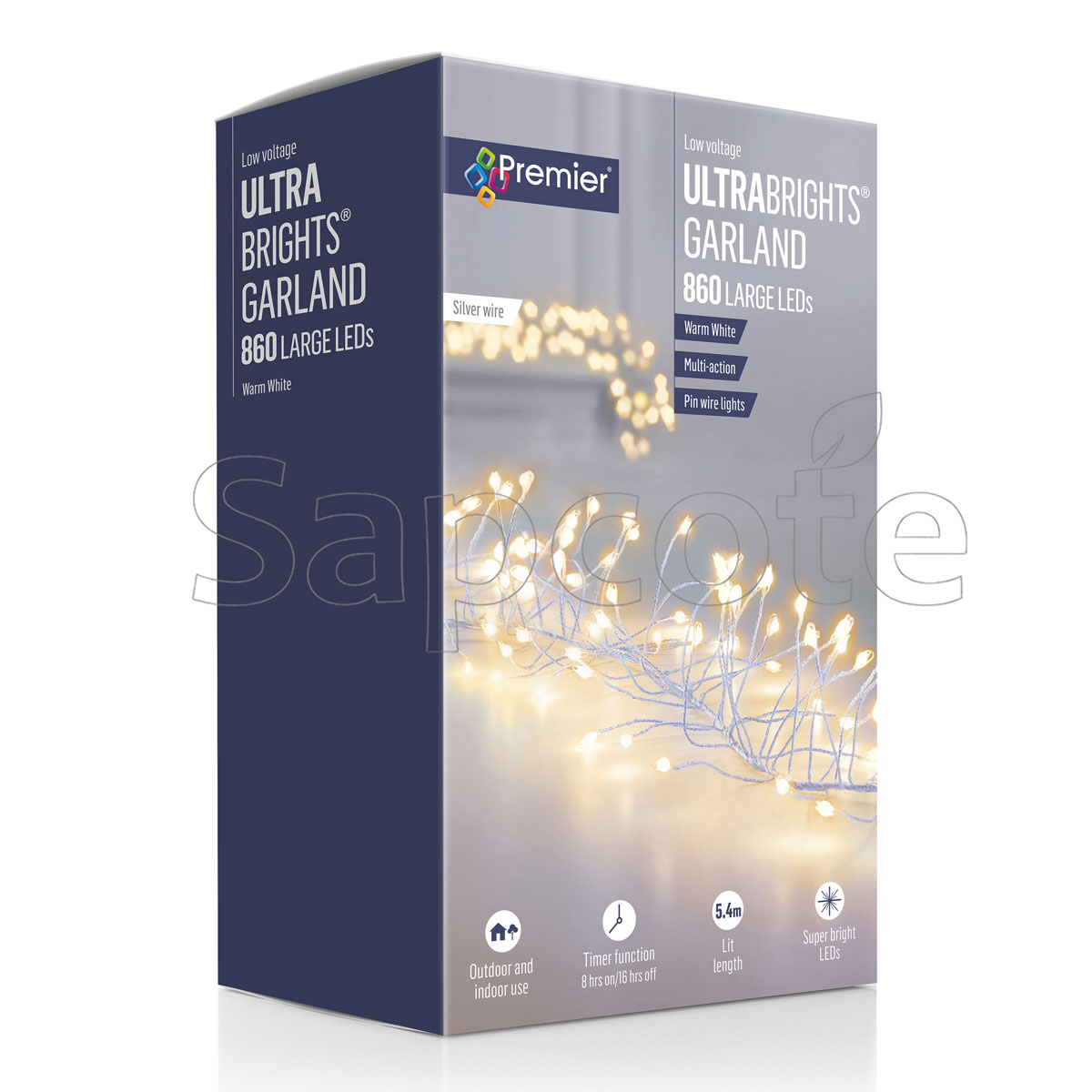 Premier Ultrabrights Garland 860 LED – Silver Pin Wire – White (5.4 m)